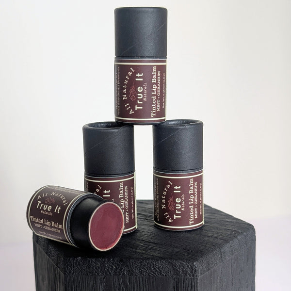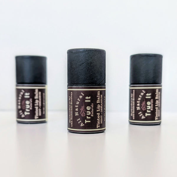 Naturally Tinted Geranium and Mint Lip Balm | Beeswax Tinted Lip Balm Tube